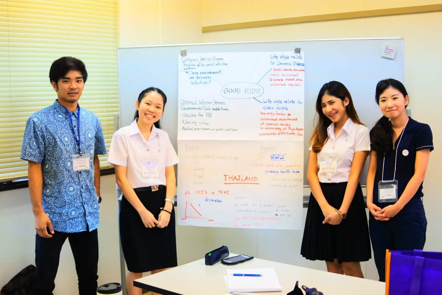 保健学科では、平成26年にタイ王国のチェンマイ大学と交流協定を締結し、研究・教育の交流および協働の強化を目的とした学部学生の交流、チェンマイ大学との共同研究を進めています。この一環として平成29年度7月16日から23日まで、チェンマイ大学から教員2名と学生8名を受け入れ、沖縄とチェンマイの相互の保健システムや教育体制についての研修を行いました。