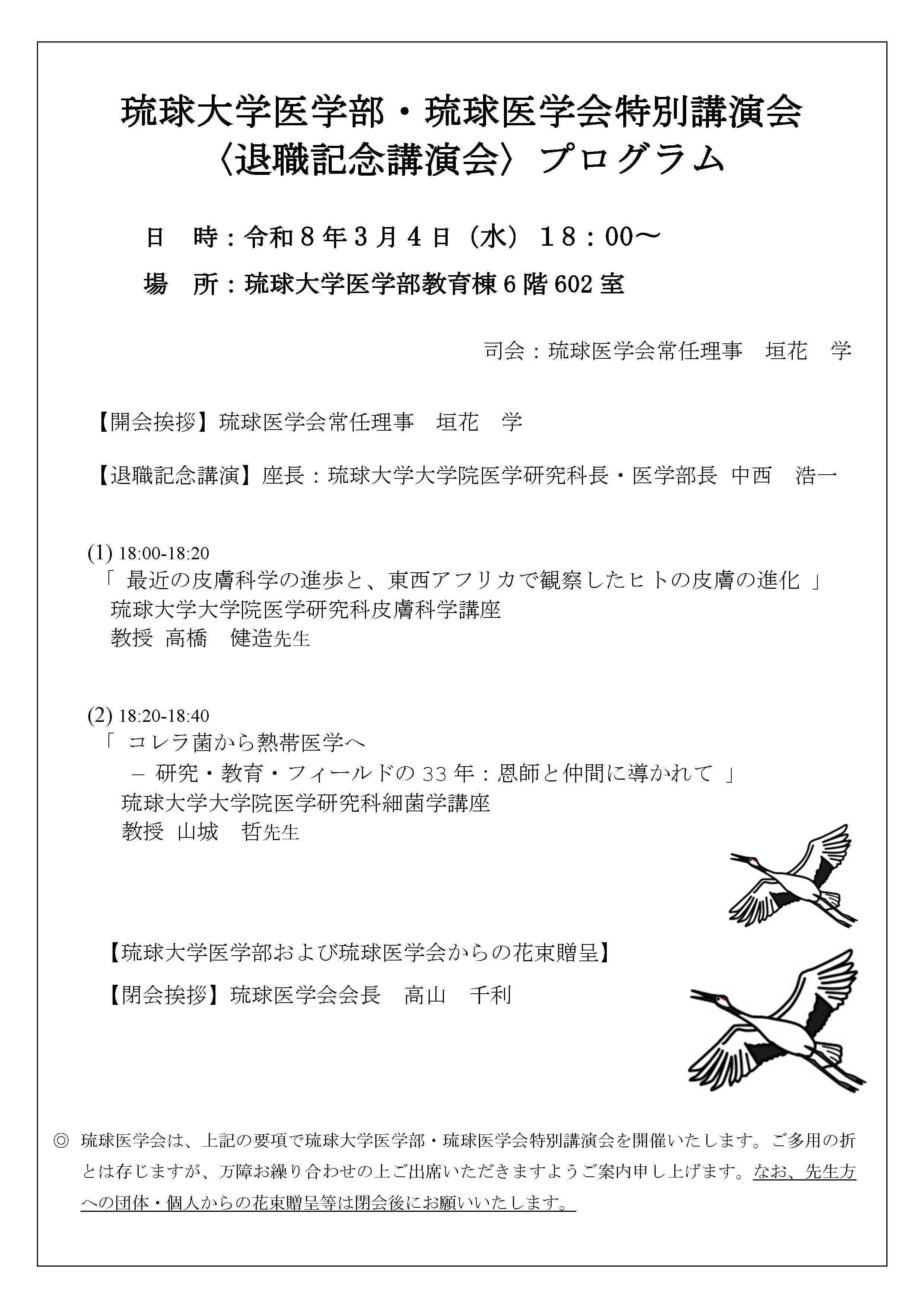令和7年度 琉球大学医学部・琉球医学会特別講演会 〈退職記念講演会〉